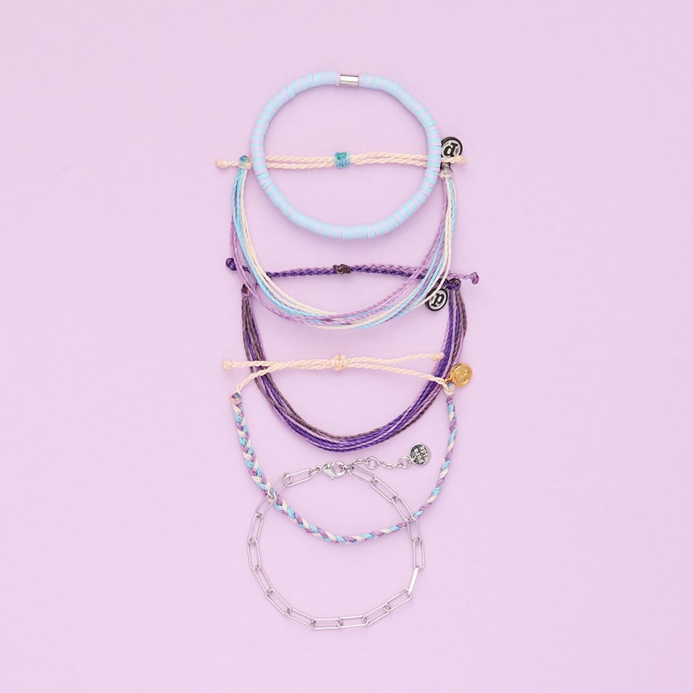 Dreamy, mellow, and made to mix. The Grapevine Pack brings together soft purples, cool blues, and sandy neutrals for a laid-back look that goes with everything. Wear it solo for subtle vibes or stack it up for a little extra charm — either way, it's an instant favorite. Made for sunset chasers, weekend wanderers, and anyone who loves a little color.